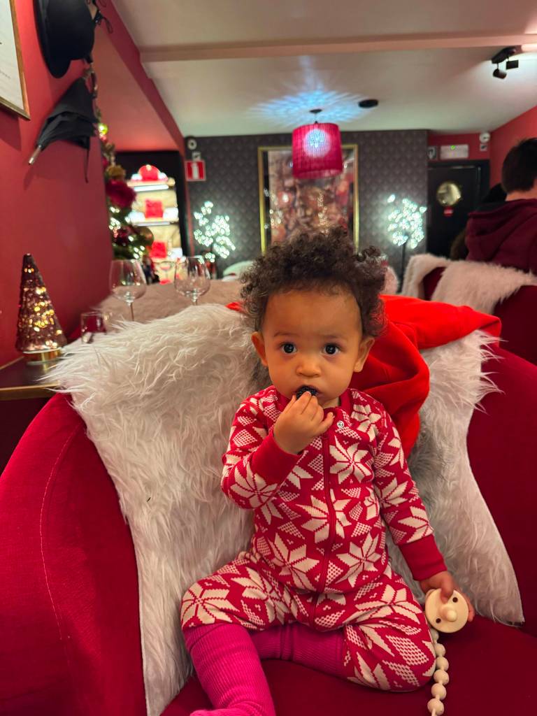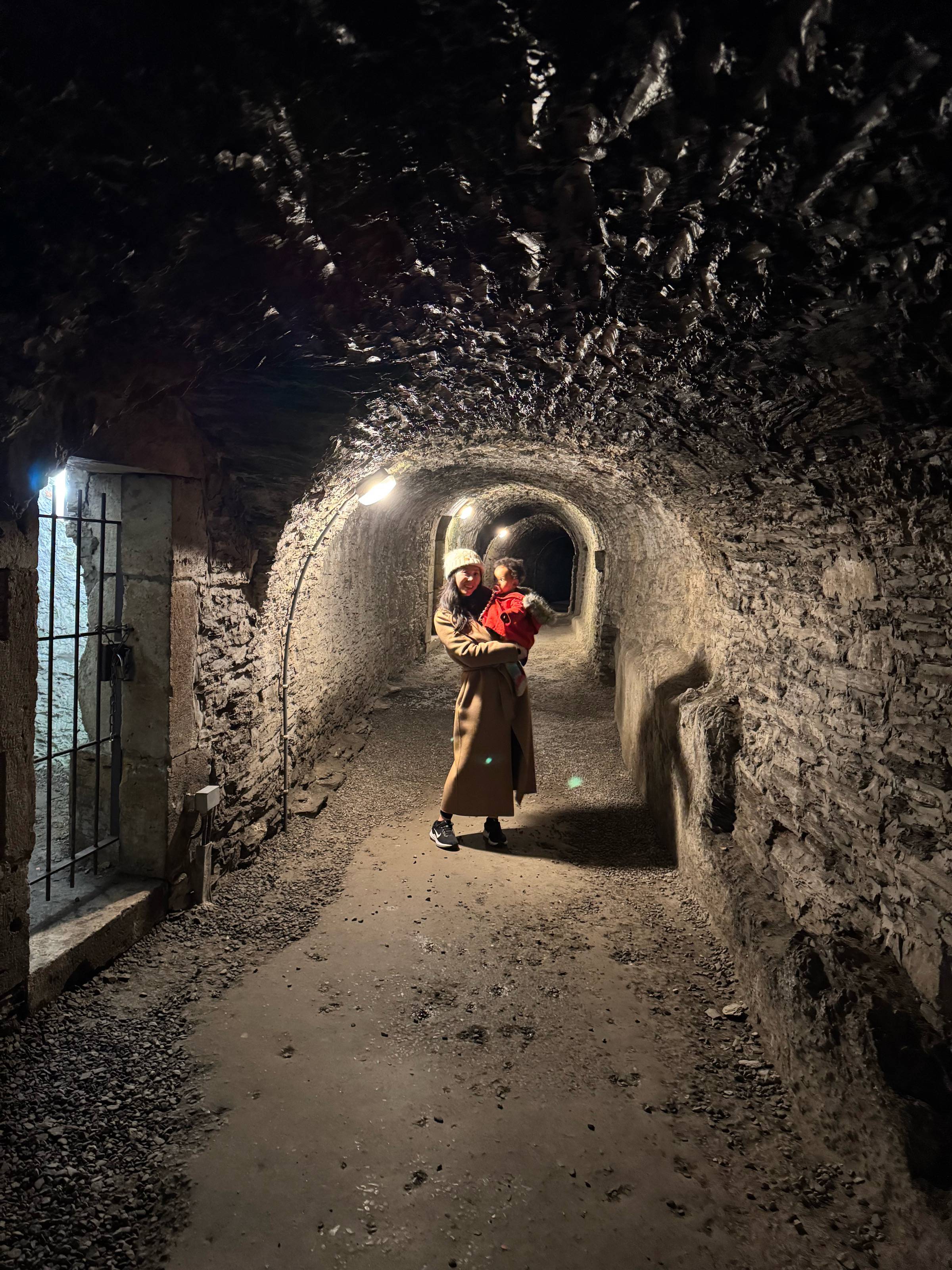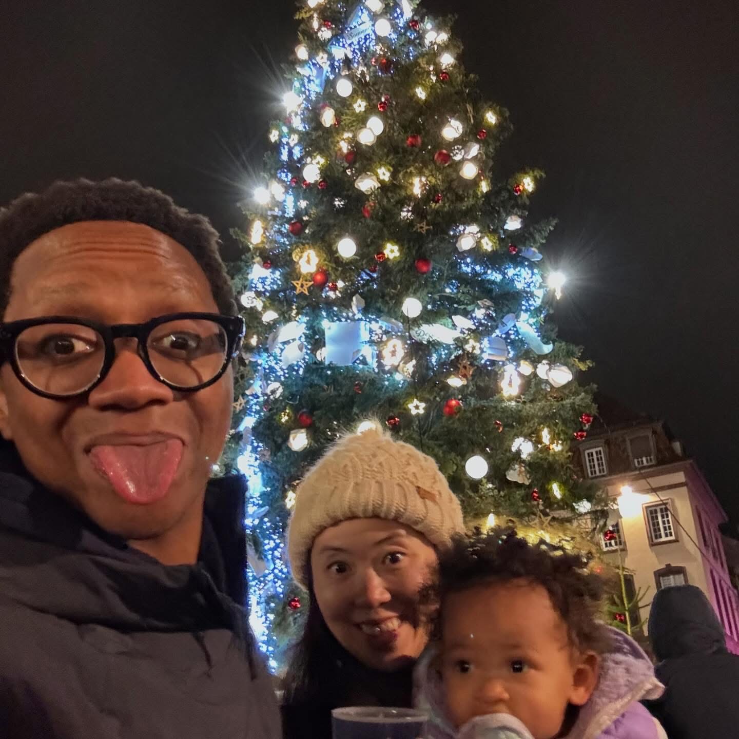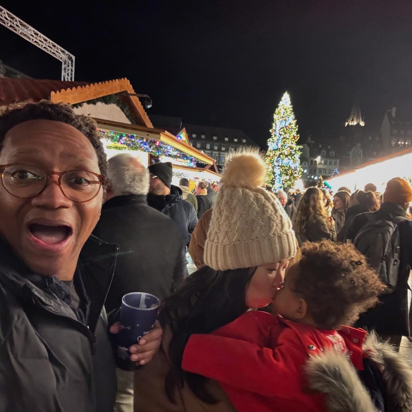 The city radiated festive spirit. We wandered cobbled streets with glühwein in hand, surrounded by twinkling lights, carousel music, and the scent of roasting chestnuts. Karimi was mesmerized by the sparkling ornaments, and hopefully picked up the tune to “Petit Papa Noël” somewhere along the way.